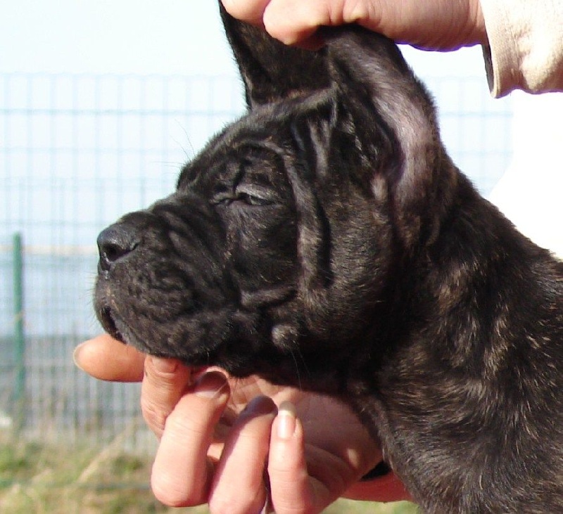 Mâle Noir Bringé, Lodi est un chiot très câlin, extrêmement doux et calme, il à un regard très soutenu rempli d'amour, il me fait beaucoup penser à son papa par son comportement, 2 mois sur les photos
