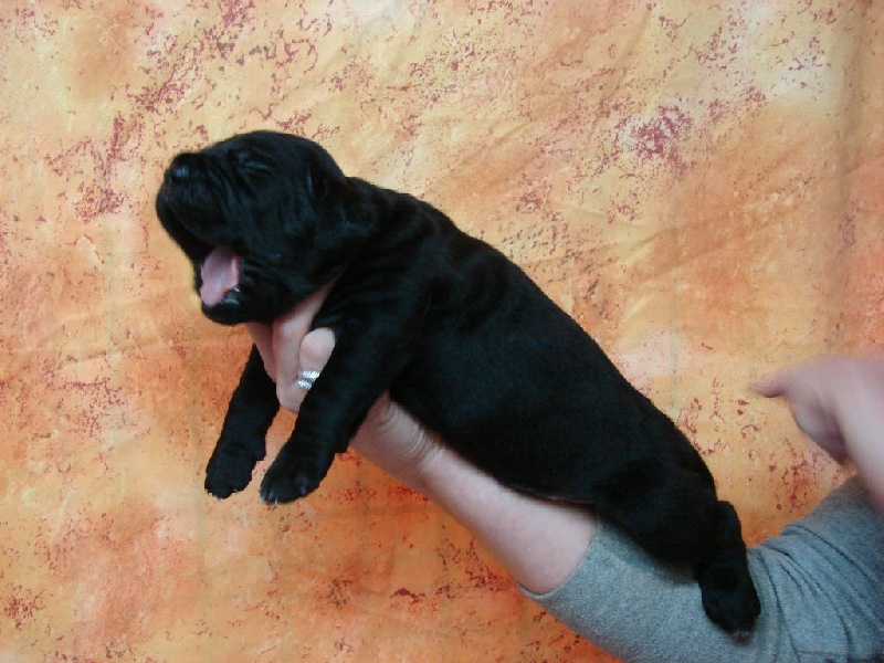 Noire, queue écourtée, un peu plus de 6 semaines sur les photos